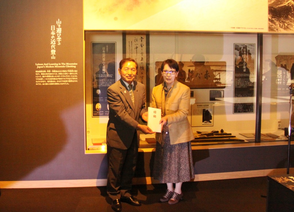 この銃とピッケルは日本近代登山史上の資料として、又、ウエストン氏と嘉門次の友情の証として、一緒に展示して欲しいとうい私共の意を大町山岳博物館が汲んで下さり今回の運びとなりました。