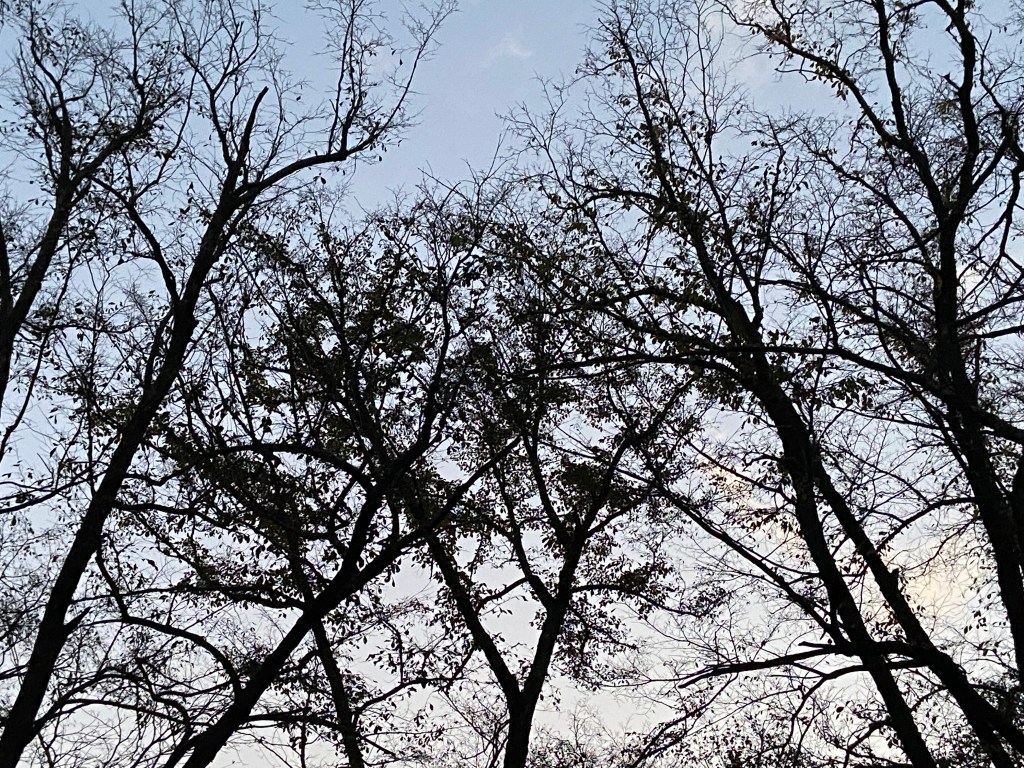 1週間ほど前には真っ黄色に色づいていた木々の葉も、毎日たくさん降ってきて、冬枯れ間近です。