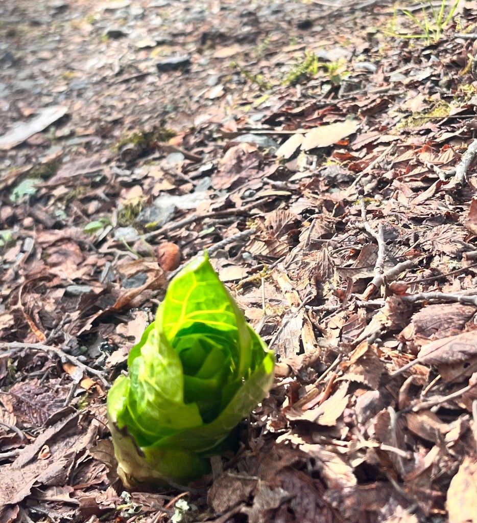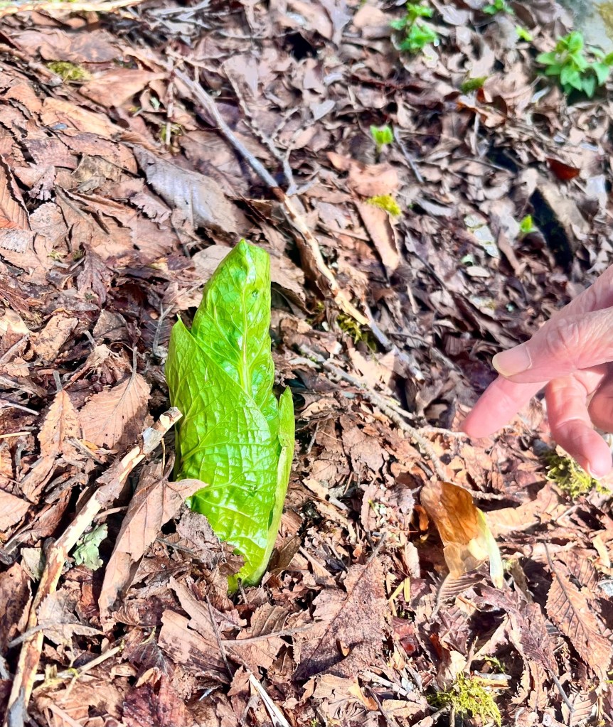 明神橋の向こうの林に沢山あったのが、いつの頃からか見えなくなっていました。でも残っていてあの大きな蒴から放たれた沢山の実の一つが風に乗ってここまで来たのです。