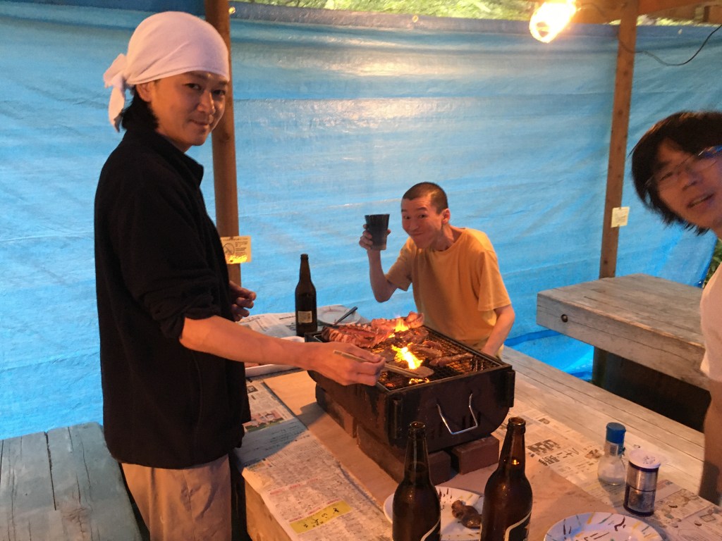 お別れが近付いた一夕,お疲さまとさようならのバーベキュー大会をしました。みんなで力を合わせて乗り切ってきたこの夏が皆さんのよい思い出になればと思います。
