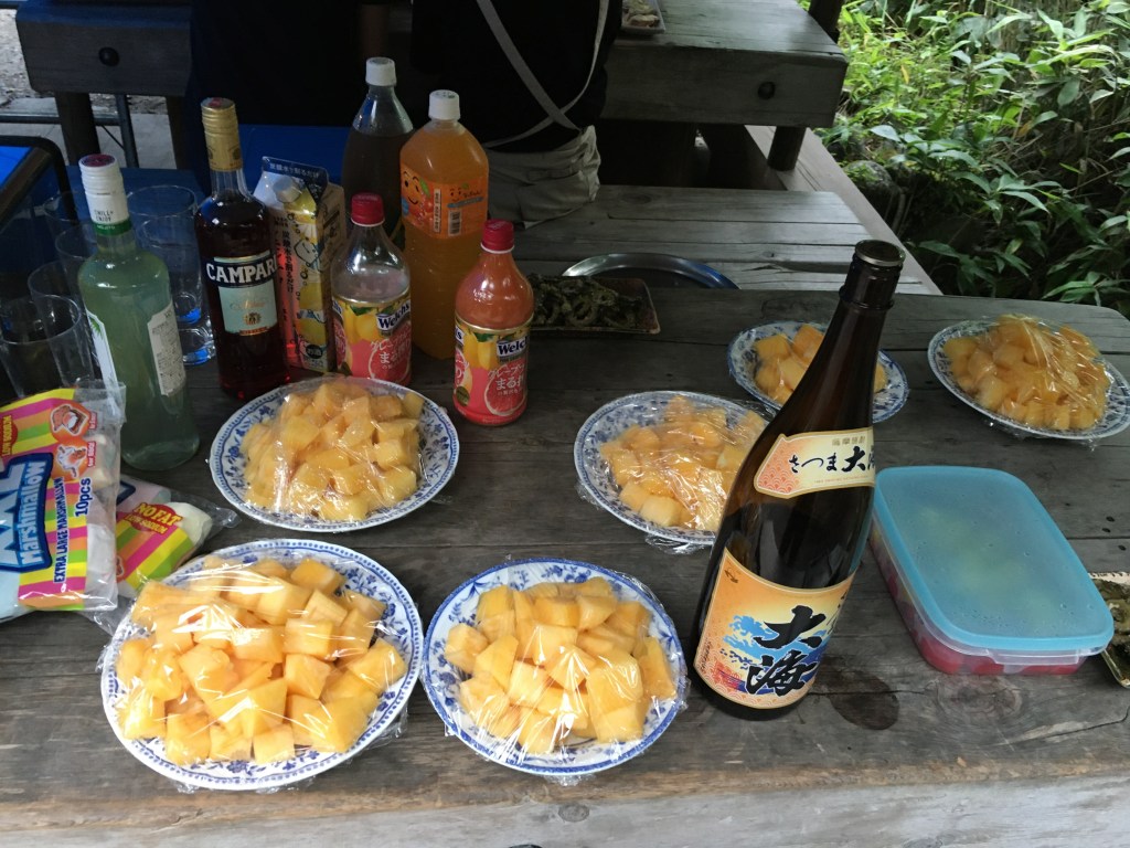 お決まりのようになっている夕立ちも来ず、おにぎりやチーズをのせたパン、西瓜などを食べすぎてお肉も魚貝類も少し残しての散会となりました。