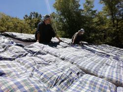 時には屋根に登ってお布団を干したりする仕事もあります。