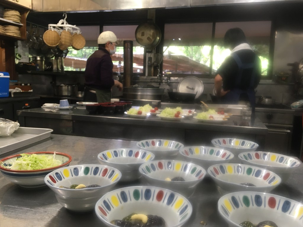食事は塩焼き以外にお蕎麦が人気で、コーヒー、お汁粉、ケーキなどの喫茶メニューも含めて、厨房では宿泊のお客様の夕食、朝食、従業員のご飯も作るポジションになります。