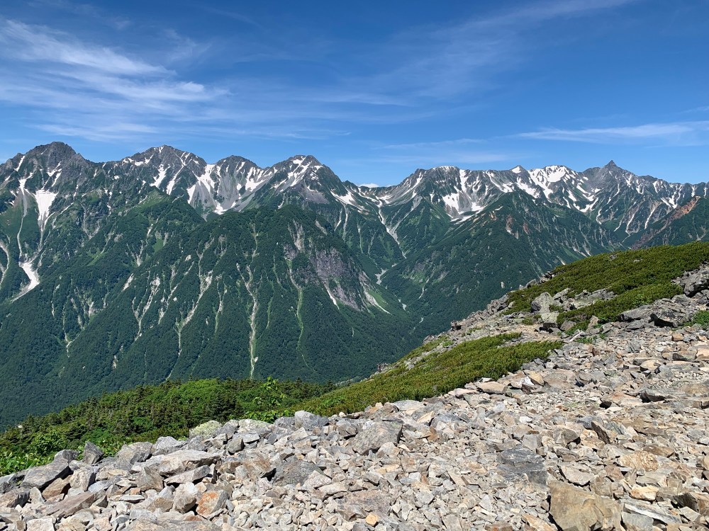 連なる穂高に、槍ヶ岳がくっきりと。
